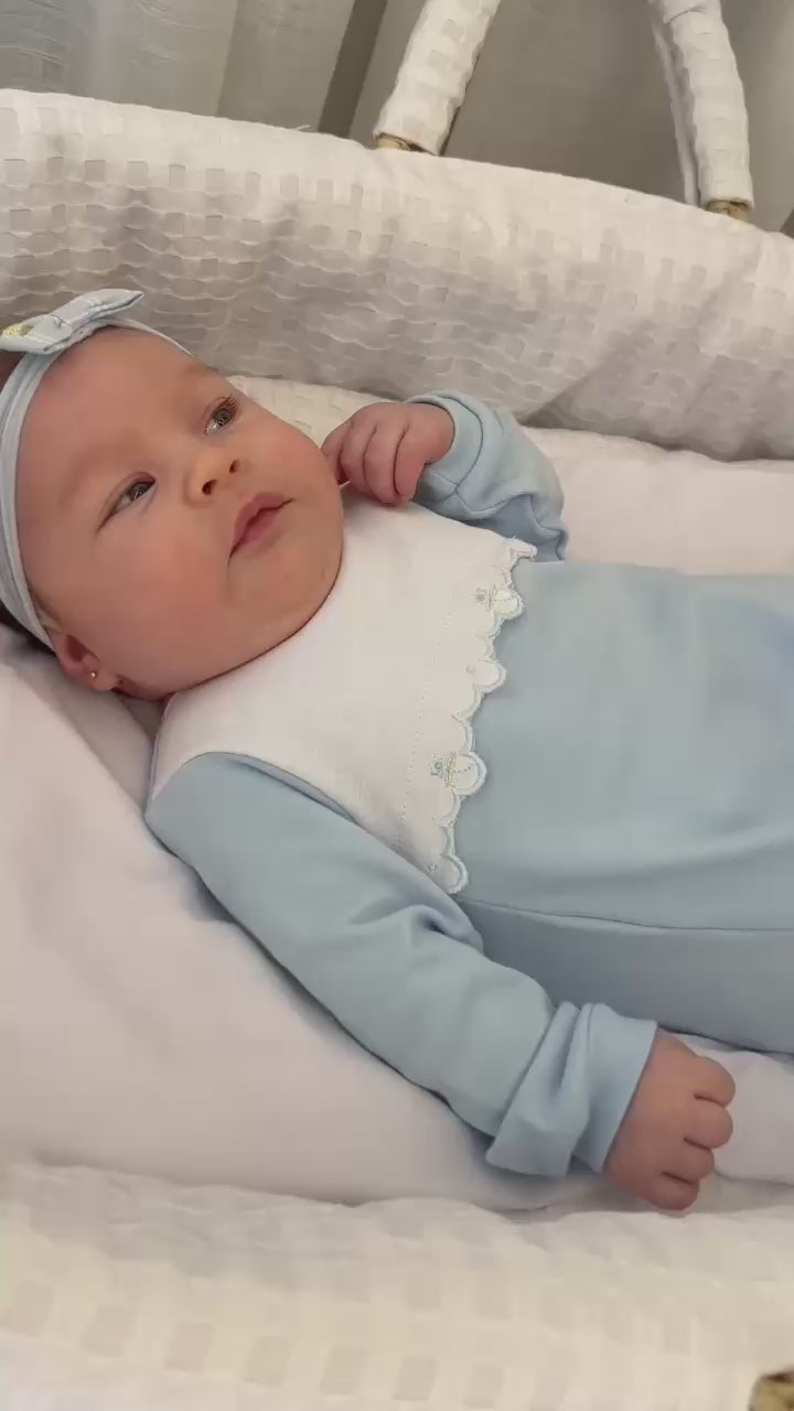 A pala bordada com flores traz um detalhe delicado e atemporal, acrescentando charme na medida certa sem perder a simplicidade. O caimento confortável permite liberdade de movimento, acompanhando o bebê com leveza durante o descanso, o colo ou os primeiros movimentos.